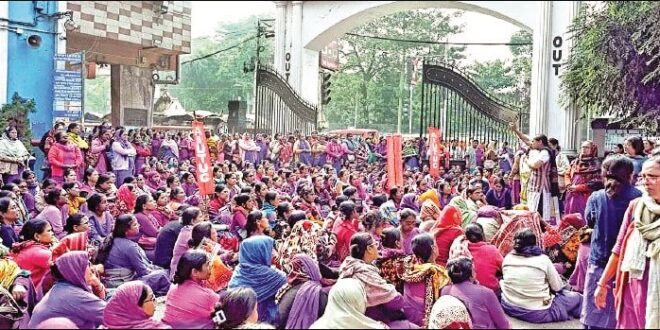 এআইইউটিইউসি অনুমোদিত পশ্চিমবঙ্গ আশাকর্মী ইউনিয়ন ও পশ্চিমবঙ্গ পৌর স্বাস্থ্যকর্মী (কন্ট্র্যাক্টচুয়াল) ইউনিয়নের নেতৃত্বে রাজ্যের গ্রাম ও শহরে হাজার হাজার আশাকর্মী ২৩ ডিসেম্বর থেকে লাগাতার কর্মবিরতি চালিয়ে যাচ্ছেন। ১৫ হাজার টাকা মাসিক ভাতা, চার মাসের বকেয়া বেতন মেটানো, ইনসেনটিভ ভাগে ভাগে দেওয়া বন্ধ, কর্মরত অবস্থায় মৃত আশাকর্মীদের পরিবারকে এককালীন ৫ লক্ষ টাকা …