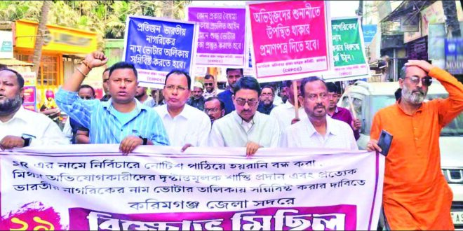 ভোটার তালিকায় বিশেষ সংশোধন (এস আর) প্রক্রিয়ায় সত্যতা যাচাই না করে নির্বিচারে হাজার হাজার সংখ্যালঘু জনগণকে মিথ্যা অভিযোগের ভিত্তিতে নোটিশ পাঠানো বন্ধ করা এবং প্রত্যেক ভারতীয় নাগরিকদের নাম ভোটার তালিকায় রাখার দাবিতে ২৯ জানুয়ারি নাগরিক অধিকার রক্ষা সমন্বয় কমিটি করিমগঞ্জ জেলা আয়ুক্ত কার্যালয়ে বিক্ষোভ দেখায়। কমিটির এক প্রতিনিধি দল জেলা …